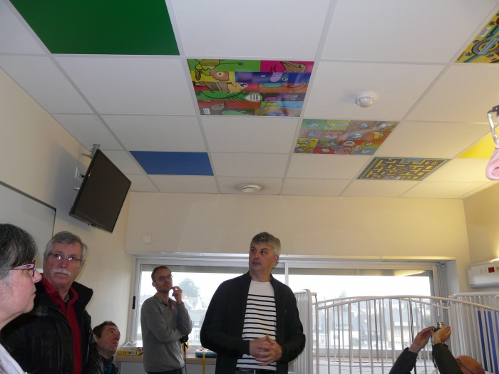 Installation de dalles ludiques au plafond des salles de soins mars 5, 2016 2:18 Publié par Assograindesel Installées à Saint-Brieuc depuis plus d’un an, nous avons également finalisé la mise en place des dalles ludiques au plafond dans les hôpitaux de Quimper et Morlaix. Dans l’article de presse, ils parlent également de notre co-financement pour le séjour d’art-thérapie du centre Gourmelen à Quimper.